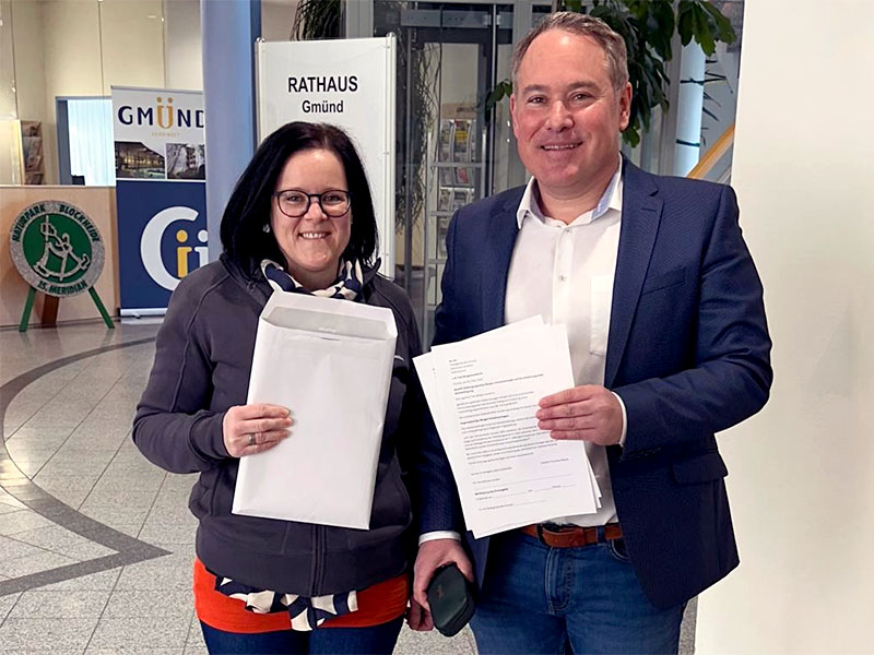 20. März 2026: Unsere Obfrau Tamara hat gemeinsam mit Stadtrat Thomas Miksch unseren Bürger-Initiativantrag an die Stadtgemeinde Gmünd übergeben. Innerhalb weniger Tage konnten wir 640 Unterschriften von Gmünder Gemeindebürger:innen sammeln. Die Zustimmung, der Zuspruch und die Wertschätzung aus der Bevölkerung war enorm. Unsere Initiative hat das klare Ziel, den Bürgerinnen und Bürgern in einer zentralen Zukunftsfrage der Region eine direkte Stimme zu geben und eine rechtliche Absicherung des Krankenhaus Gmünd zu ermöglichen.