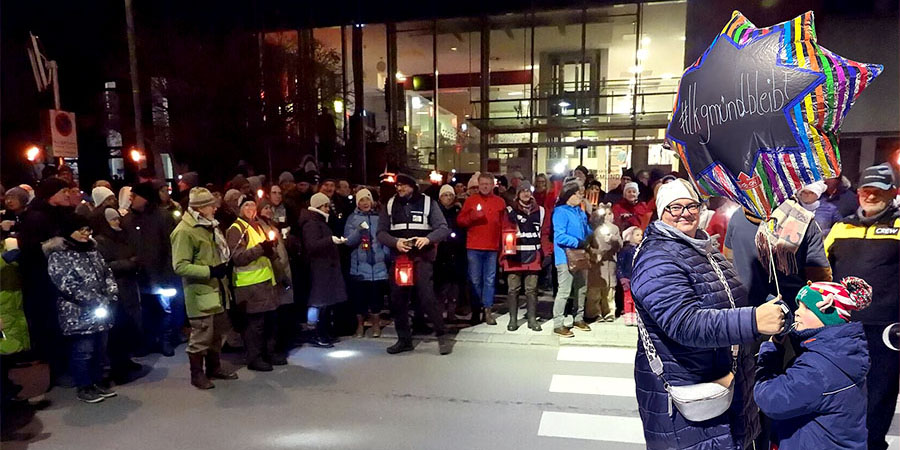 Ein besonderes Zeichen setzten hunderte von Lichtern, die um 18:30 Uhr den Platz erhellten – ein stiller und emotionaler Moment. Auch bei den im Gemeindegebiet aufgestellten Plakatständern zur Mahnwache stellten Bürger:innen Kerzen ab.